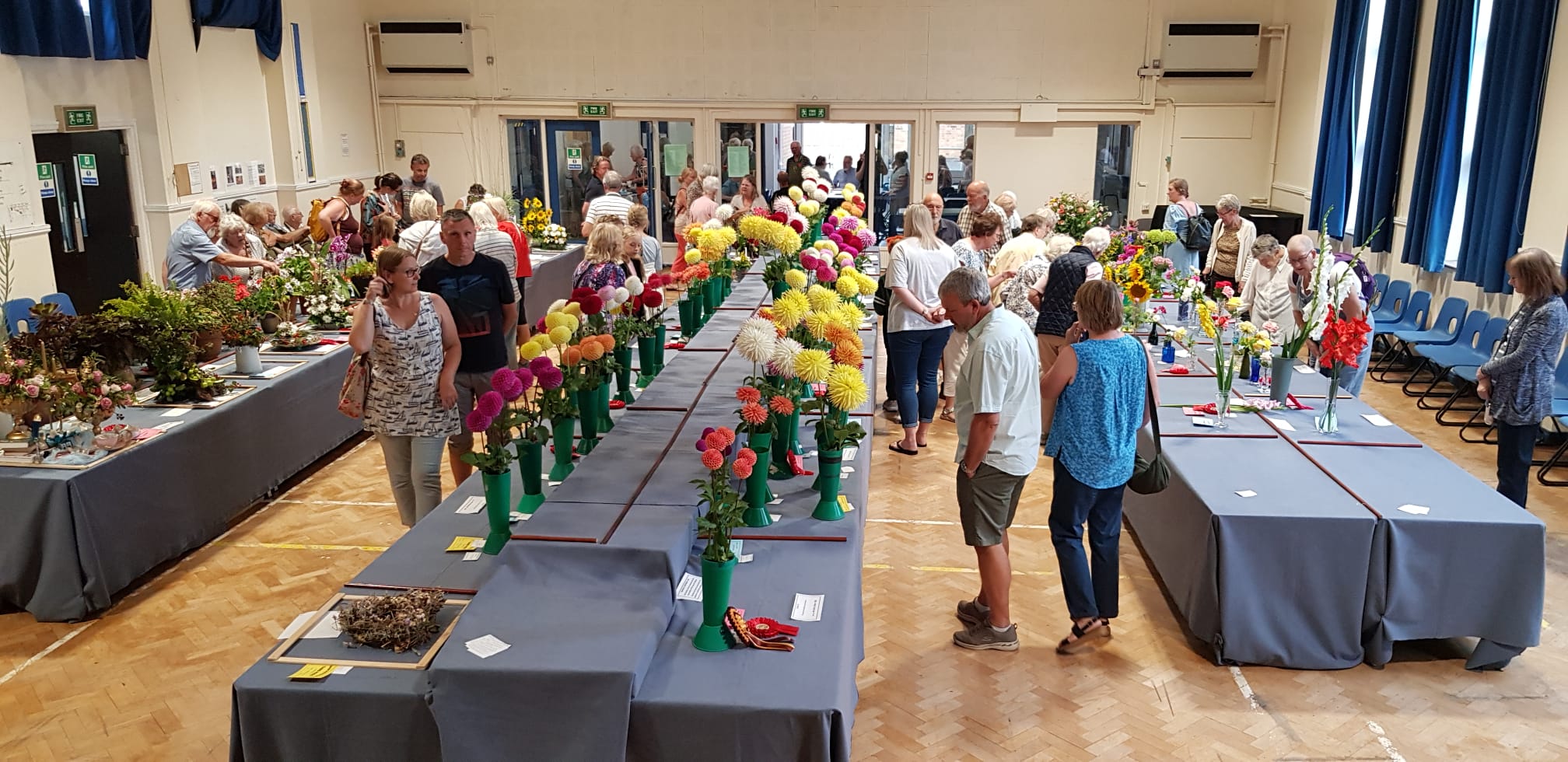 A splendid array of dahlias, roses, potted plants and flower arrangements greeted visitors to the Burbage Gardening Club 77th Open Show as they arrived at Hastings High School on Saturday 16th August. Despite the growing season being rather challenging this year exhibitors showed their expertise in growing a whole range of fruit, vegetables and herbs. The café and bar buzzed, and the afternoon ended with the raffle, prize giving, and the presentation of the Recognition Award from the Royal Horticultural Society to Derek Wheeler for his many years of service to the club.